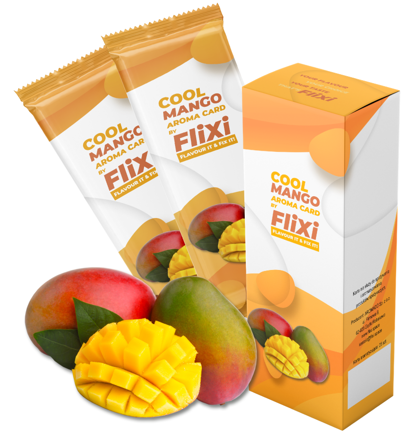Karta pozwala zmienić zapach i smak dowolnego produktu na aromat świeżego i orzeźwiającego mango z pełną kontrolą finalnej intensywności – im dłuższy czas aromatyzowania, tym większa intensywność aromatu i smaku.